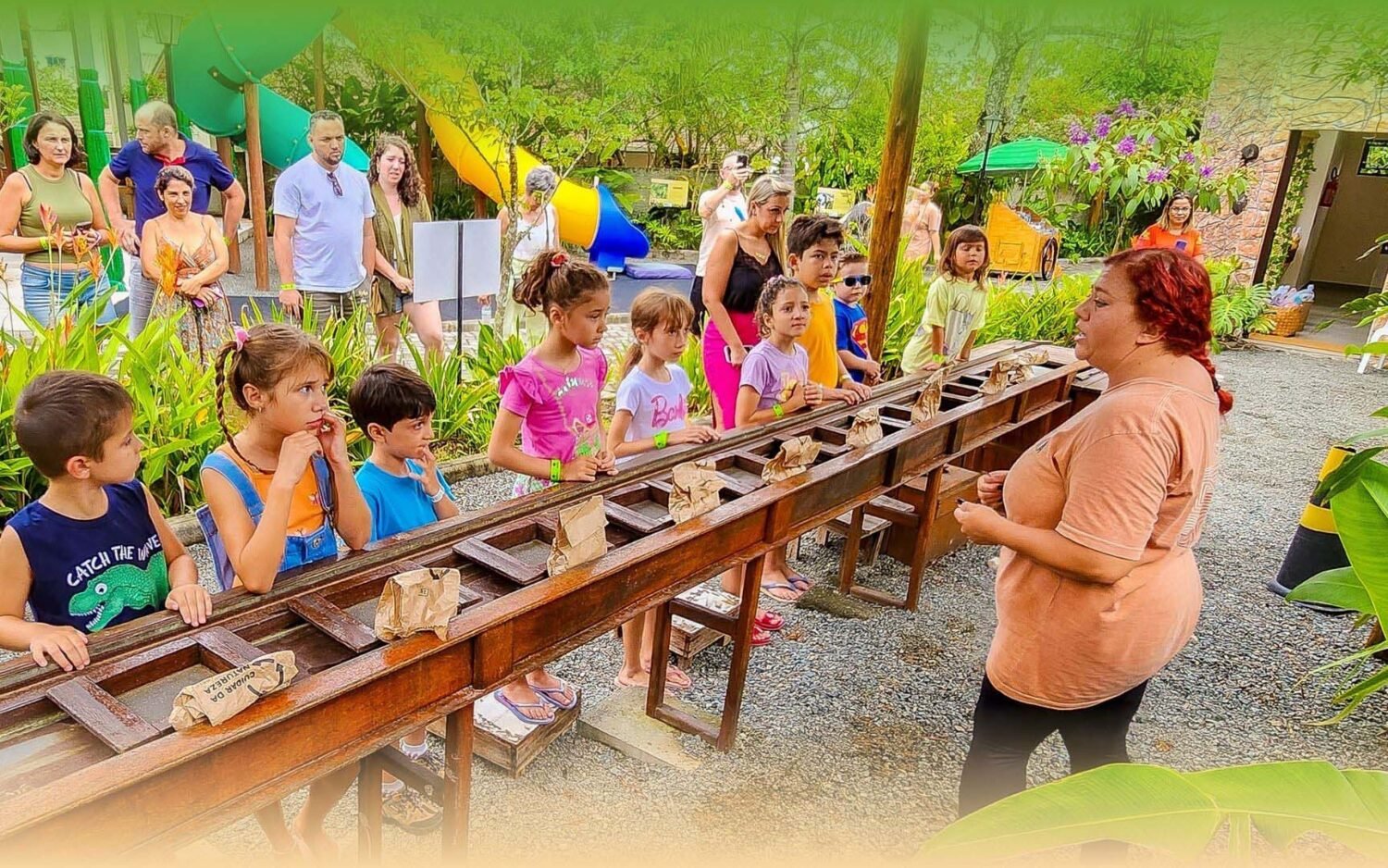 - Plantação de Sementes: Uma experiência interativa onde as crianças aprendem sobre o processo de plantio e a importância de cuidar da natureza, guiadas por um “guardião da floresta”.