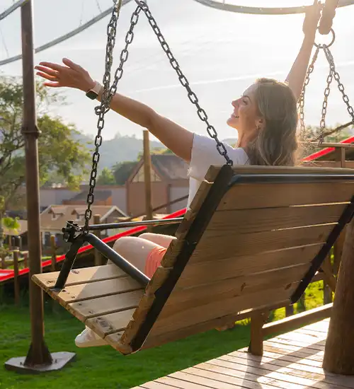 - Desafio das Árvores: Percursos aéreos com pontes, redes e obstáculos para testar equilíbrio e coragem, ideal para as crianças.