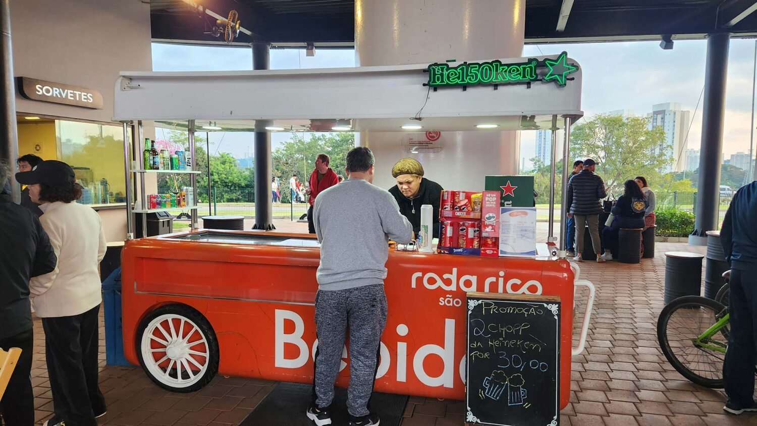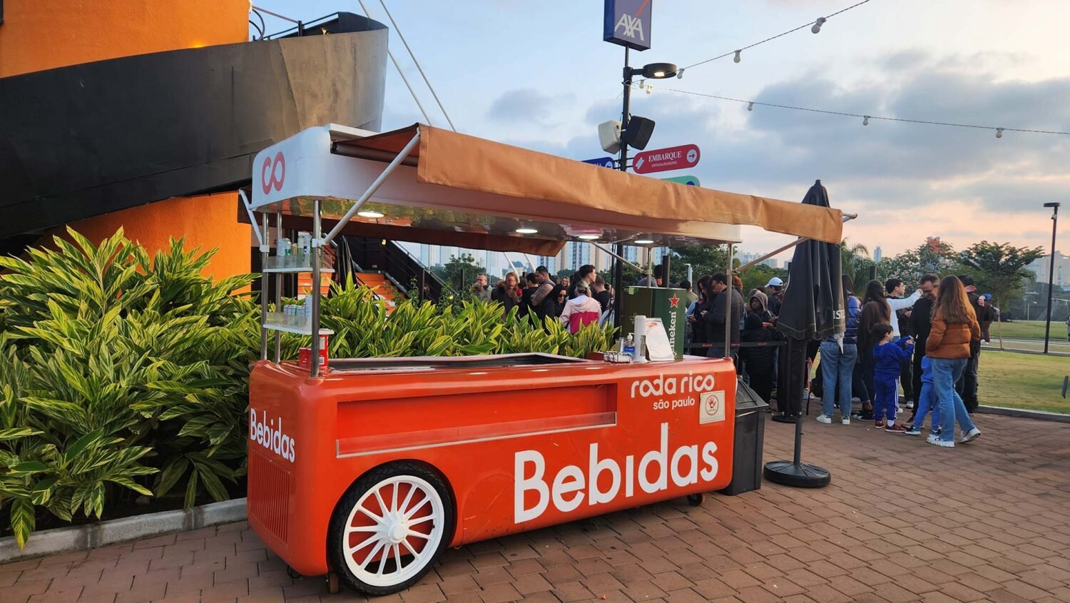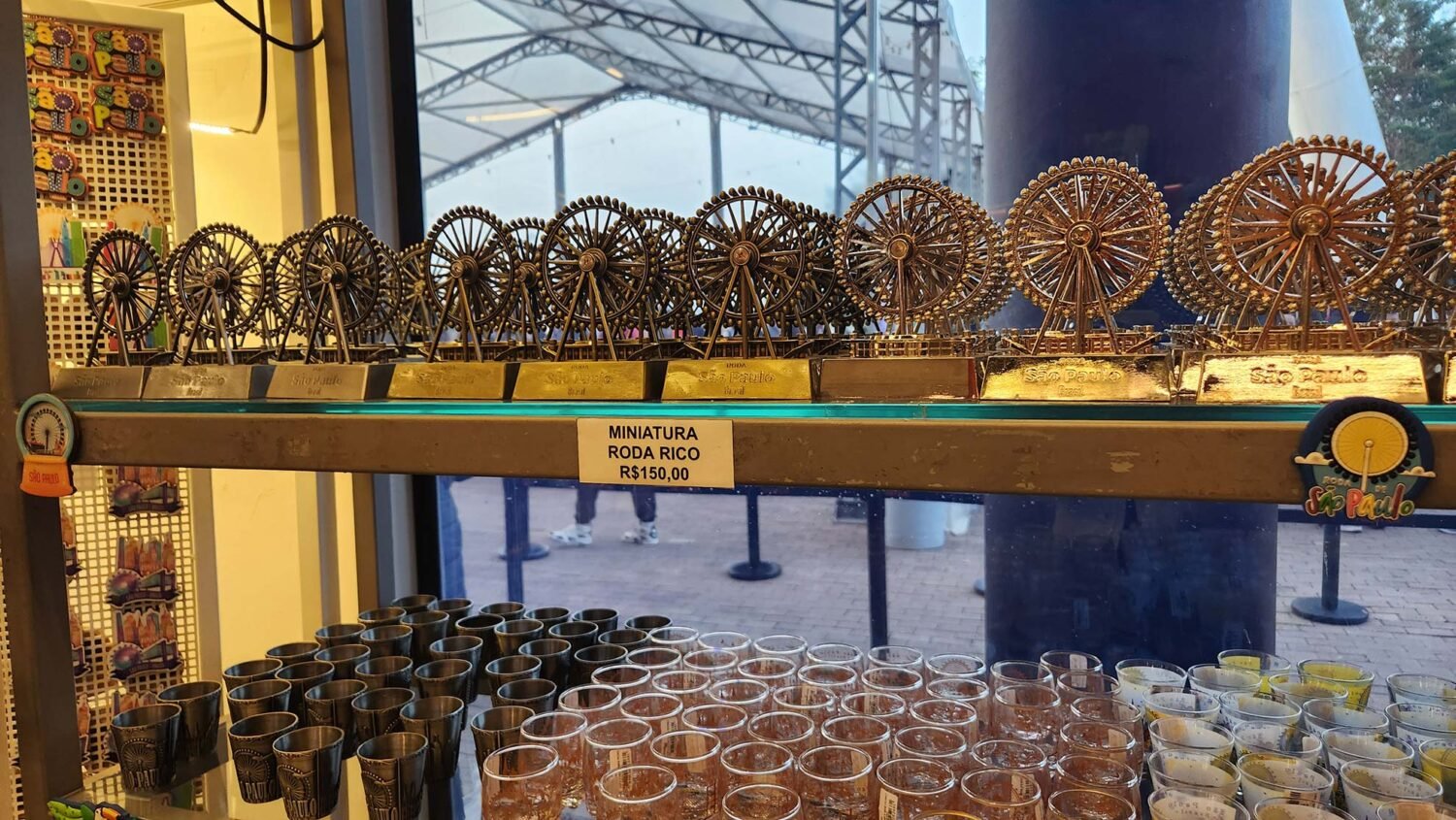 No pé da roda-gigante, há uma área coberta super charmosa com choperias, sorveteria e uma lojinha linda com itens personalizados da Roda Rico São Paulo e da cidade de São Paulo. É o lugar perfeito para esticar a experiência e levar uma lembrancinha.