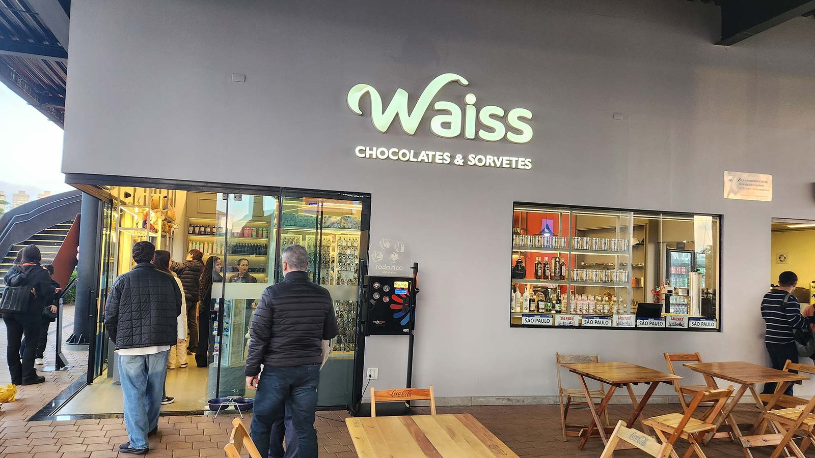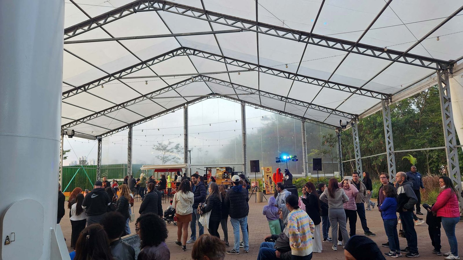 No pé da roda-gigante, há uma área coberta super charmosa com choperias, sorveteria e uma lojinha linda com itens personalizados da Roda Rico São Paulo e da cidade de São Paulo. É o lugar perfeito para esticar a experiência e levar uma lembrancinha.